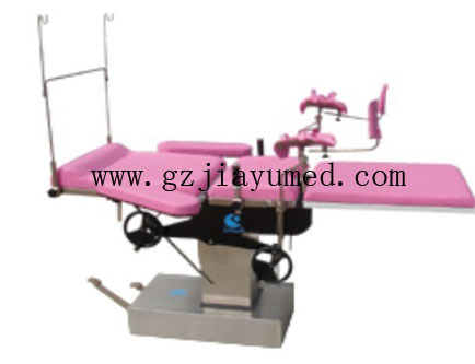 本床用于产妇分娩及施行妇科手术,主床和辅助台面连为一体,使用十分方便、背板上下折、台面前后倾由手轮操作,主床采用油泵液压升降。